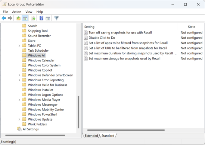 Susan Bradley / CSOYou can prevent Recall use by turning off the saving of snapshots and also disabling Click to Do. Alternatively, if you want to enable the service, I recommend setting a list of applications that you want filtered as well as excluding a list of URLs.In addition, you can set policies for Copilot. Under User Configuration > Administrative Templates > Windows Components > Windows Copilot, you can enable or disable the use of Copilot proactively: